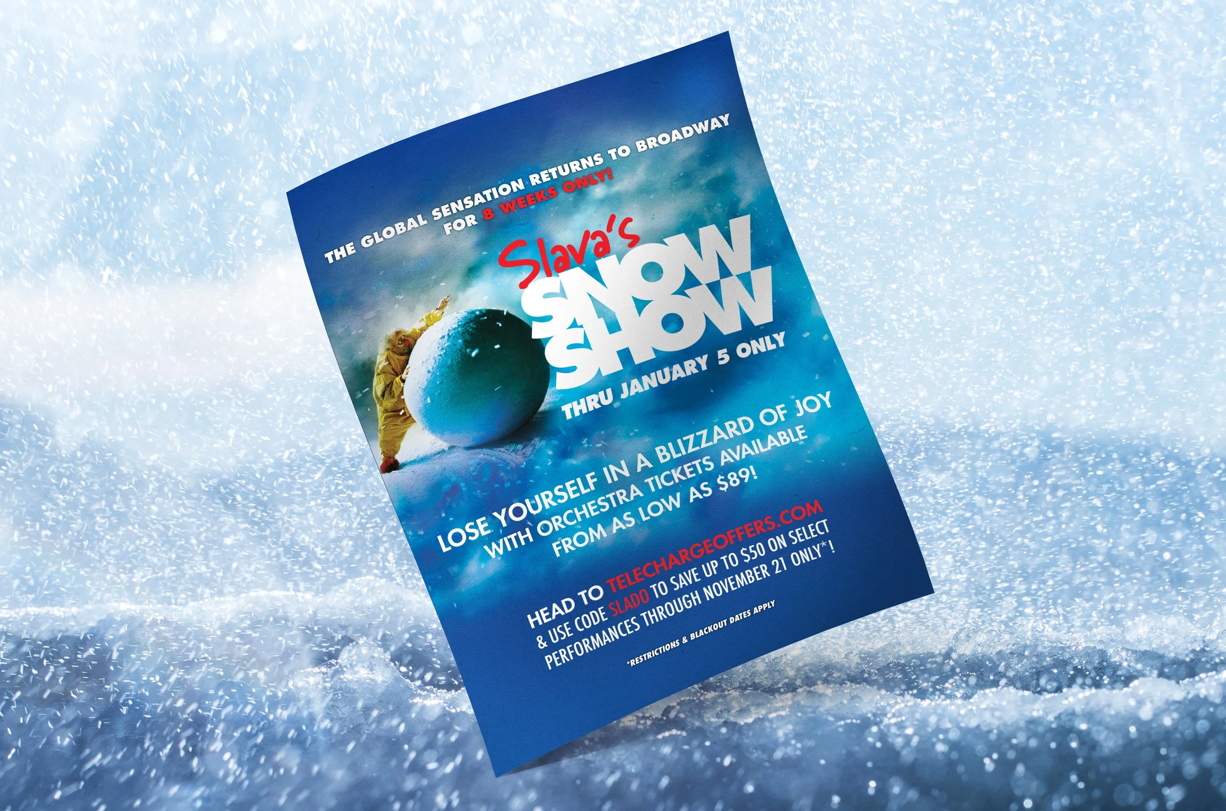 ArtHouseDesigned a wide range of digital and printed assets for 5 Broadway shows, Come from Away, Girl from the North Country, Stomp, Other World, and Slava’s Snow Show.